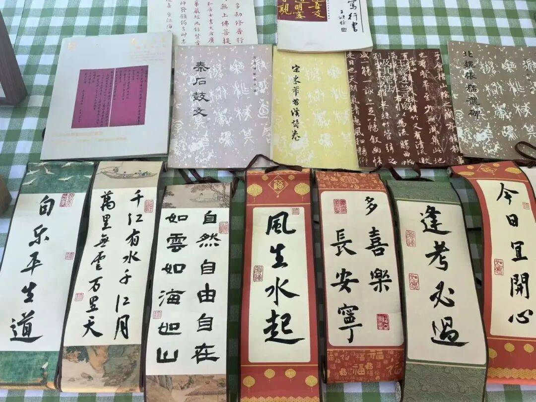 住在津南区的薛敏华和爱人带着他们的旧书、文创产品,驱车赶来。她和爱人各有一个摊位——知月艺术书苑、点月书楼。